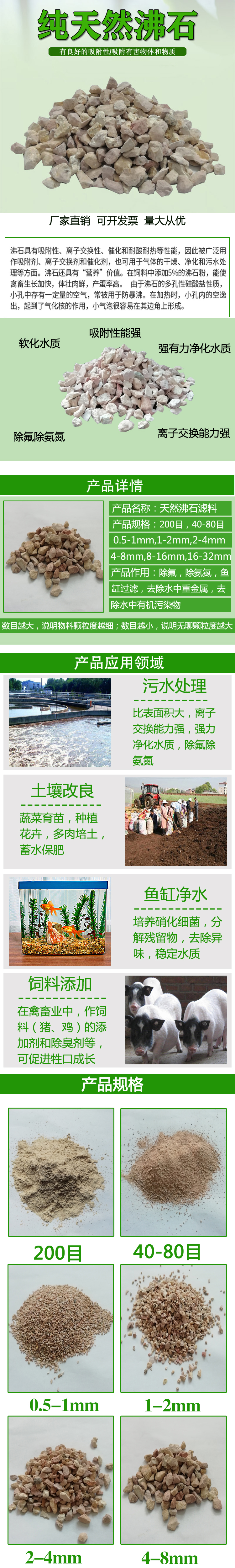 卓栩供天然沸石滤料 绿色颗粒造景5-8mm污臭河道治理除氨