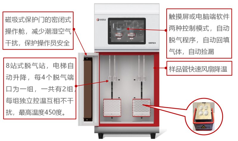 ●脱气站能智能判断样品是否预处理干净,智能停止脱气进程。