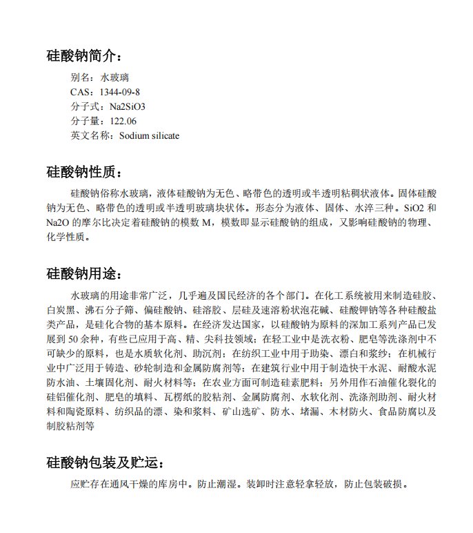 酸性固化剂原料 硅酸钠(水玻璃)可提供不用模数