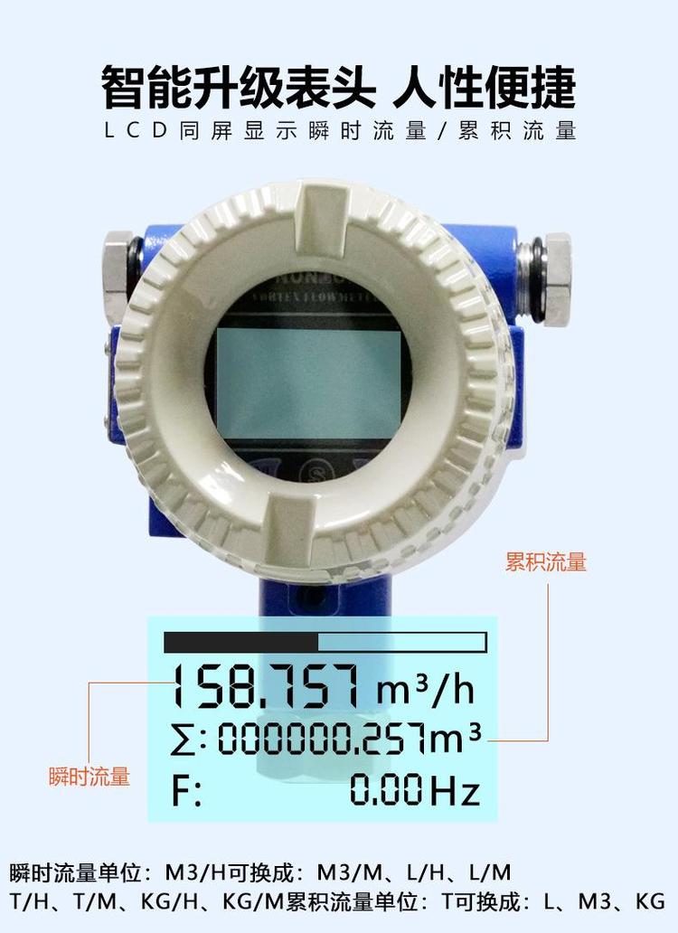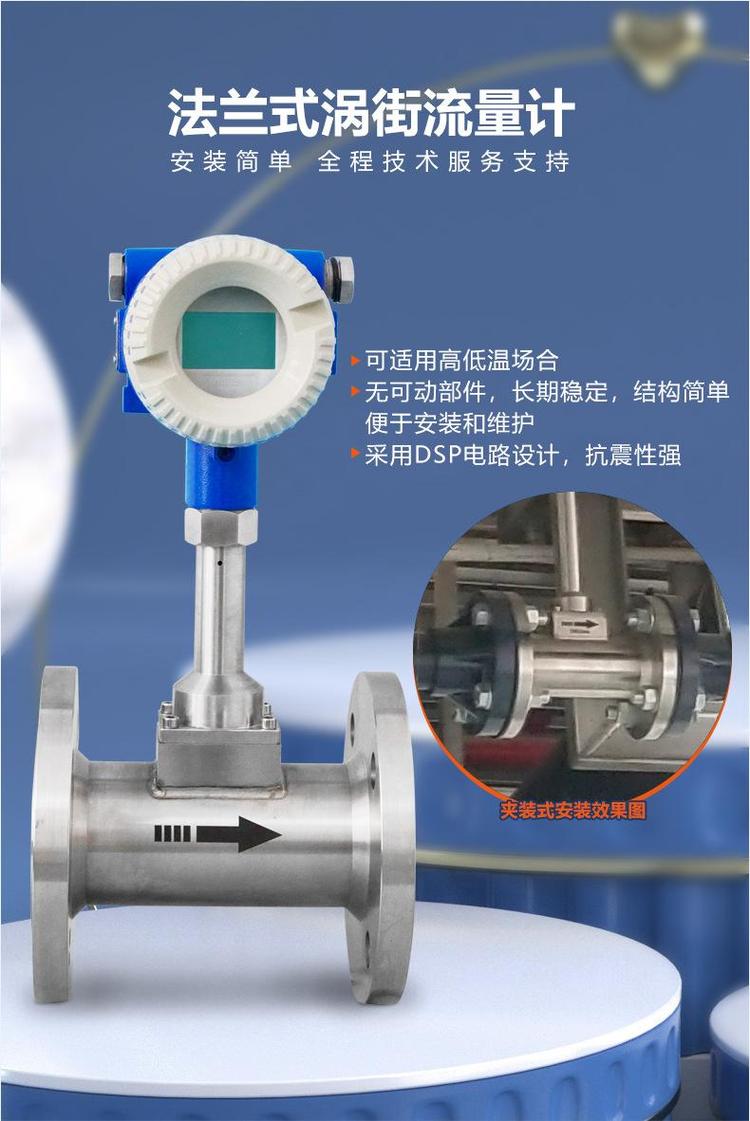 法兰智能涡街流量计 测热油热水压缩空气蒸汽 流量表带显示测量