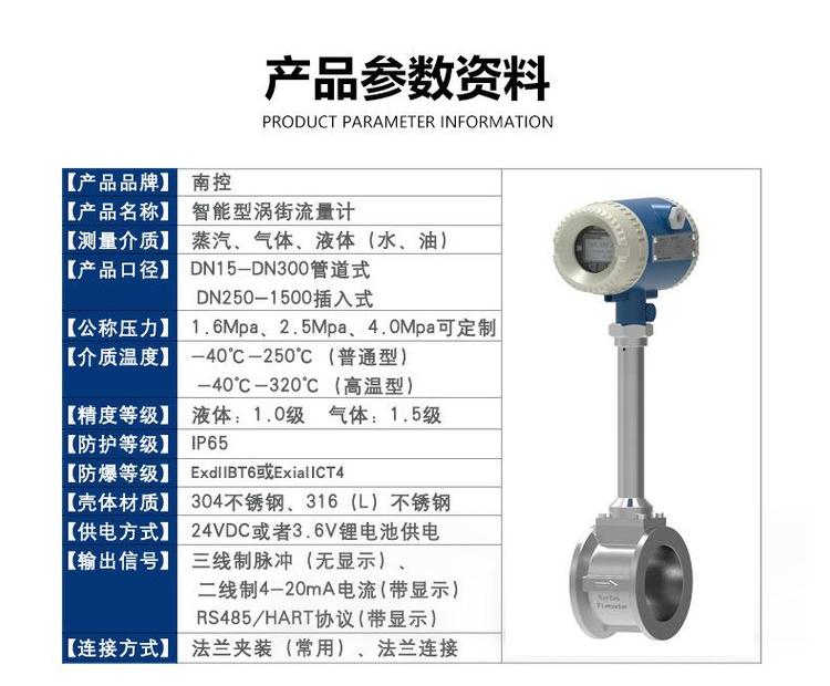 南控铸造夹装涡街流量计 脉冲流量仪表流体振荡式仪表厂家直供