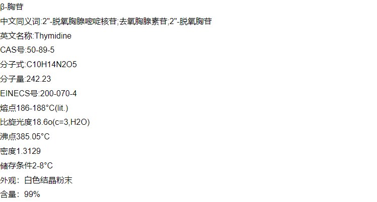 β-胸苷 50-89-5 生化试剂 工业级原料 支持试样 可分装 25KG