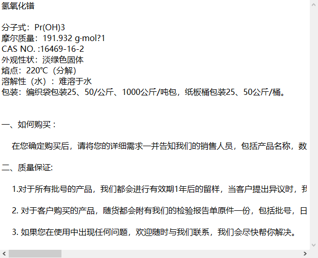 氢氧化镨 CAS :16469-16-2 用于有机合成高分子材料