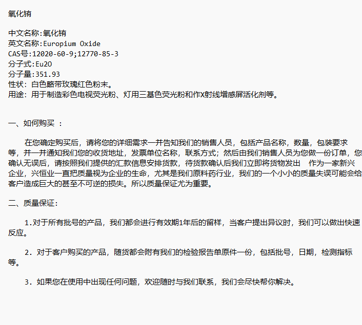 氧化铕 CAS号:12020-60-9;12770-85-3 用于制造彩色电视荧光粉