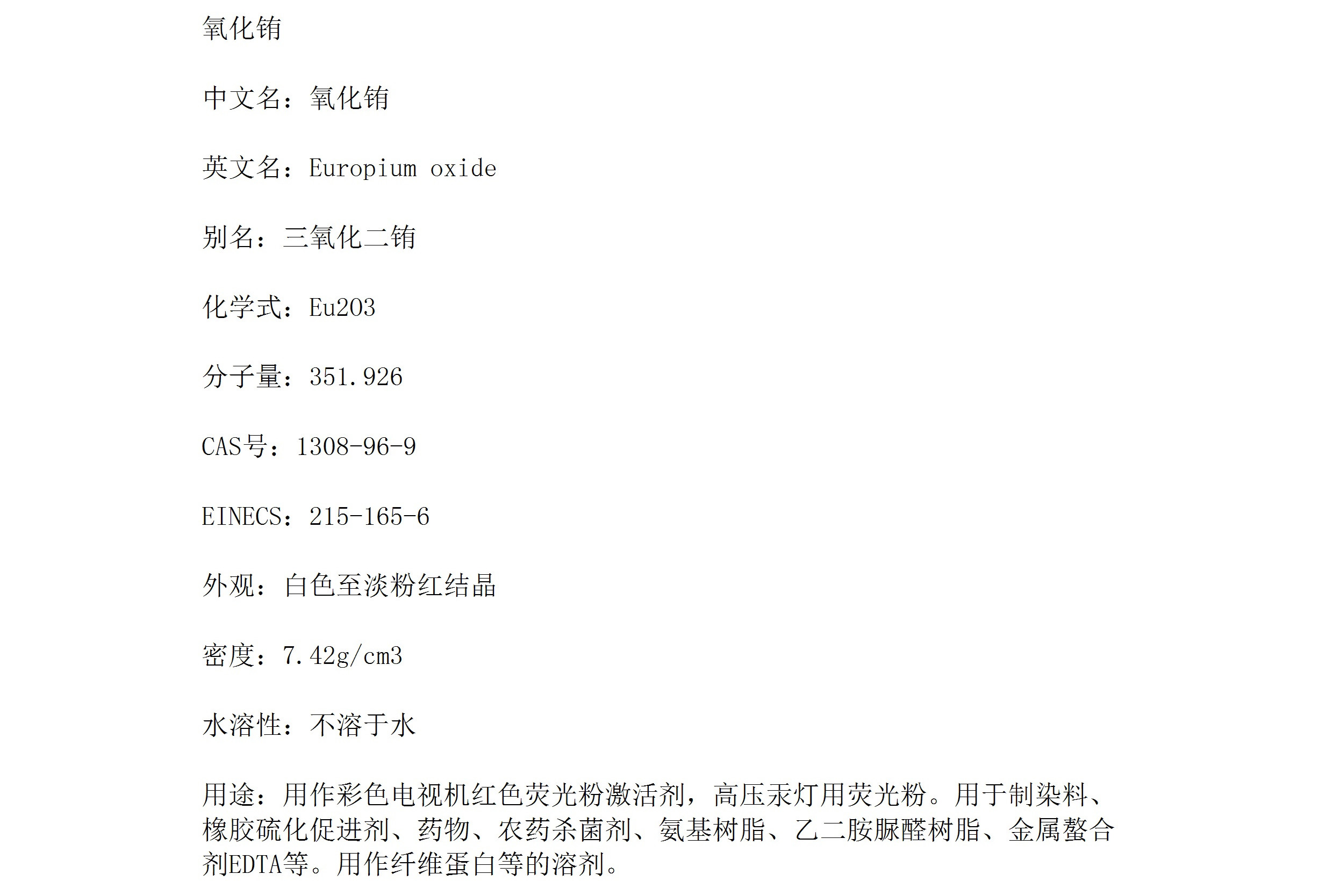 氧化铕 Eu2O3白色结晶 染料橡胶硫化促进剂 化学试剂