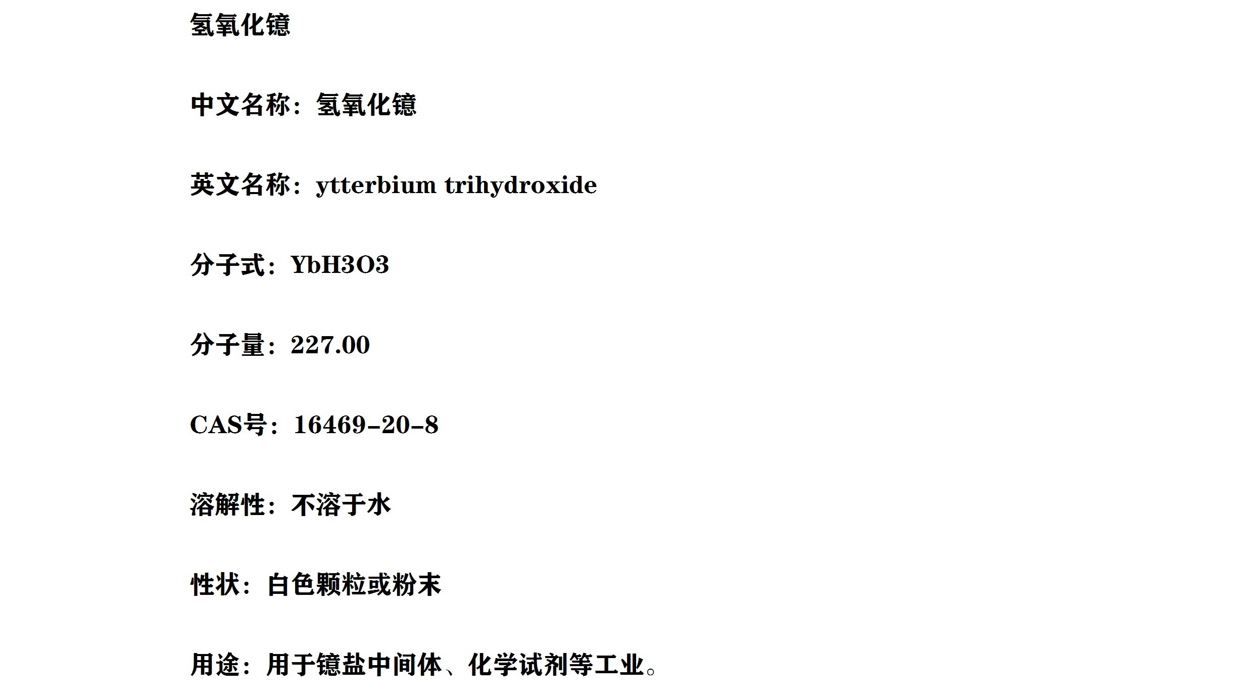 氢氧化镱 99.9%含量 用于电子陶瓷光学元件材料