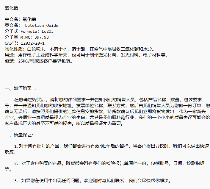 氧化镥 CAS号:12032-20-1 用作电子工业或科学研究