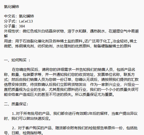 氯化镧铈 含量:99.9%用于石油裂化催化剂及各种稀土盐的原料