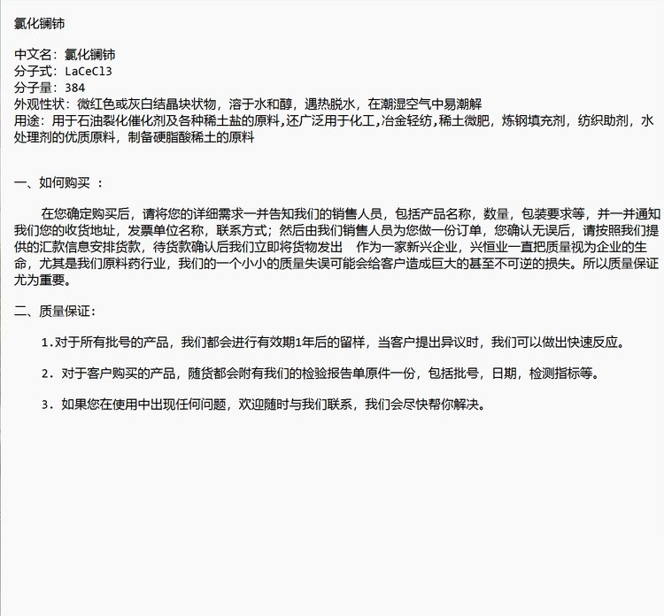 氯化镧铈 用于石油裂化催化剂及各种稀土盐的原料