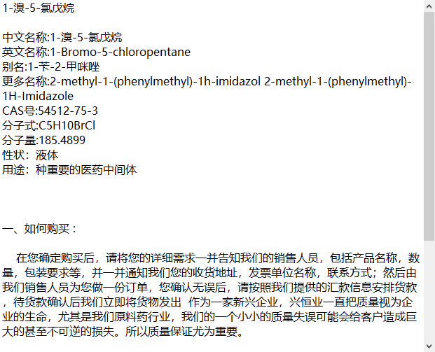 1-溴-5-氯戊烷(1-苄-2-甲咪唑) CAS号:54512-75-3用于中间体