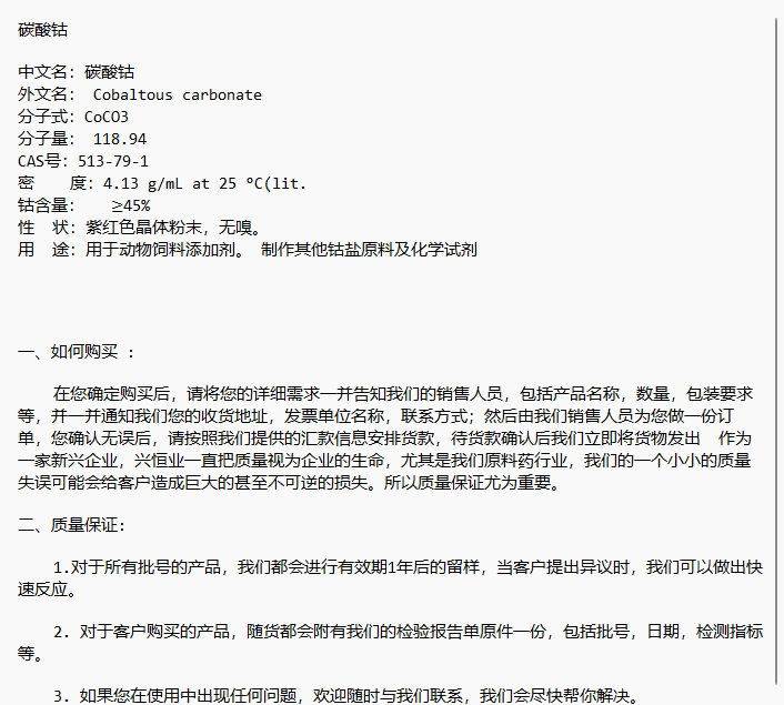 碳酸钴 用于动物饲料添加剂 CAS号:513-79-1 兴恒业