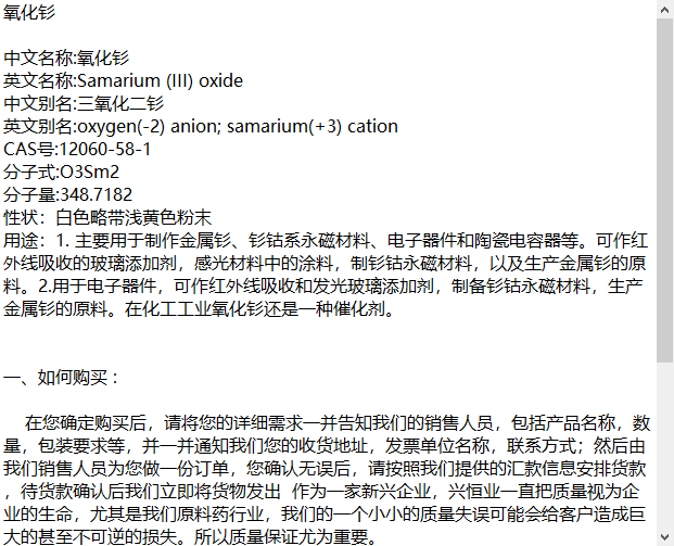 氧化钐(三氧化二钐) CAS号:12060-58-1用于制作金属钐