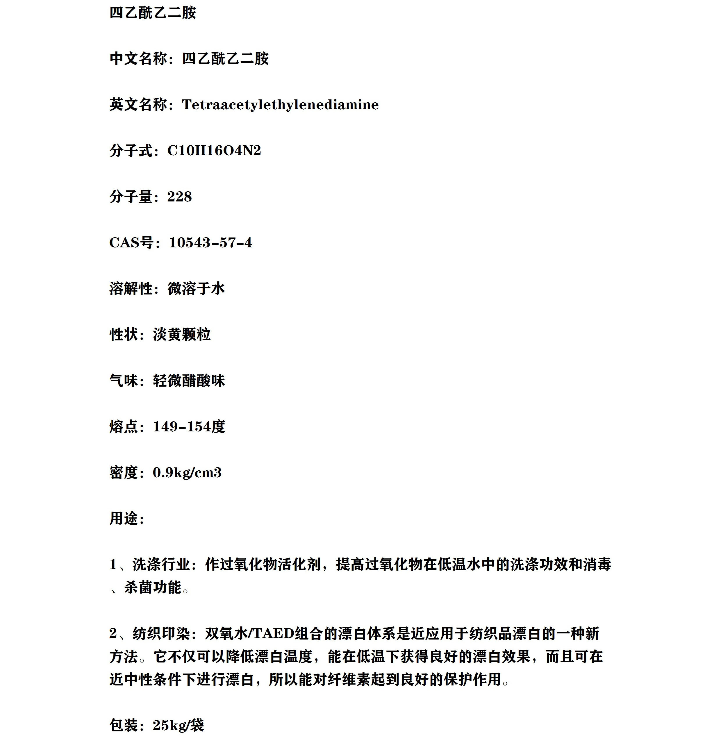 四乙酰乙二胺 过氧化物活化剂 用于纺织织物消毒漂白