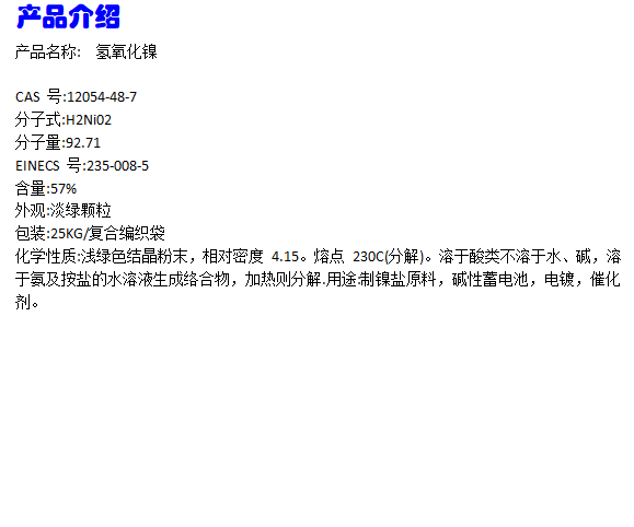 氢氧化镍 CAS 12054-48-7 含量57% 包装1kg 25kg 鑫宇宏