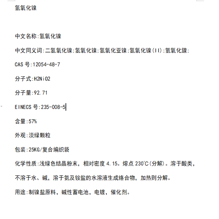 氢氧化镍 CAS#12054-48-7 含量57% 包装1kg 25kg 雅迈德