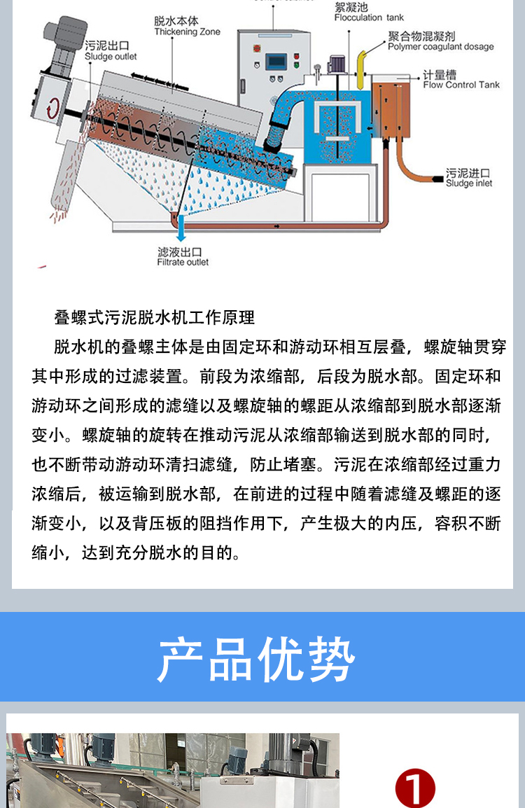 运腾养猪场用不锈钢叠螺式污泥浓缩脱水机固液分离机a075