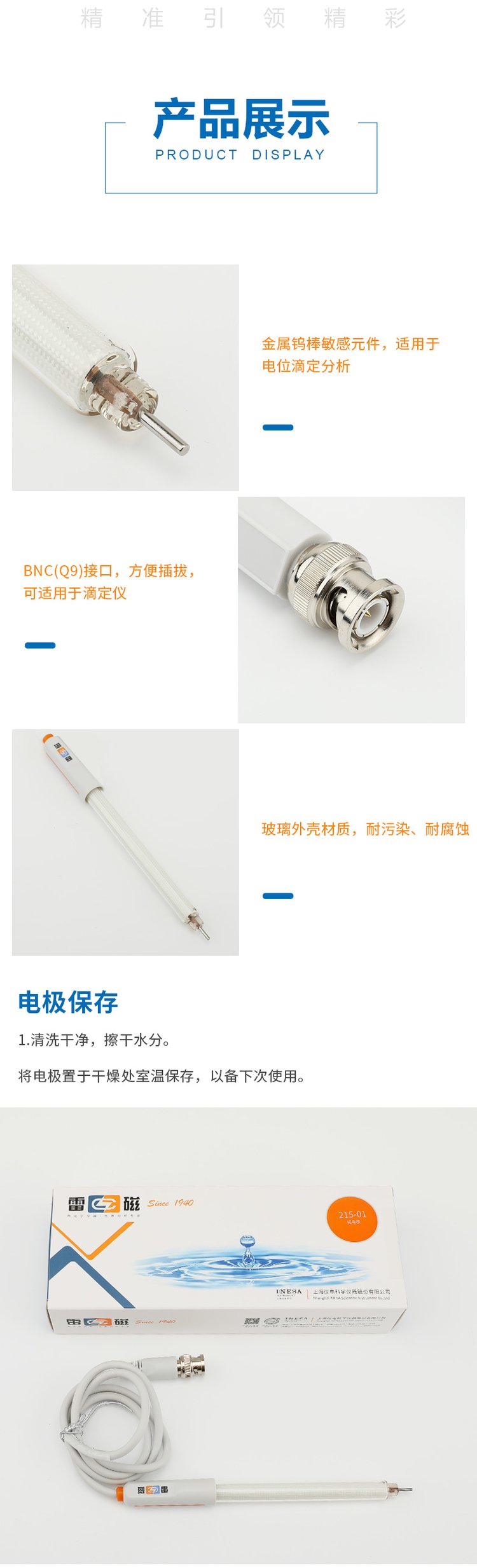 雷磁215-01 型钨电极BNC(Q9 型)厂家支持定制 金属系列电极