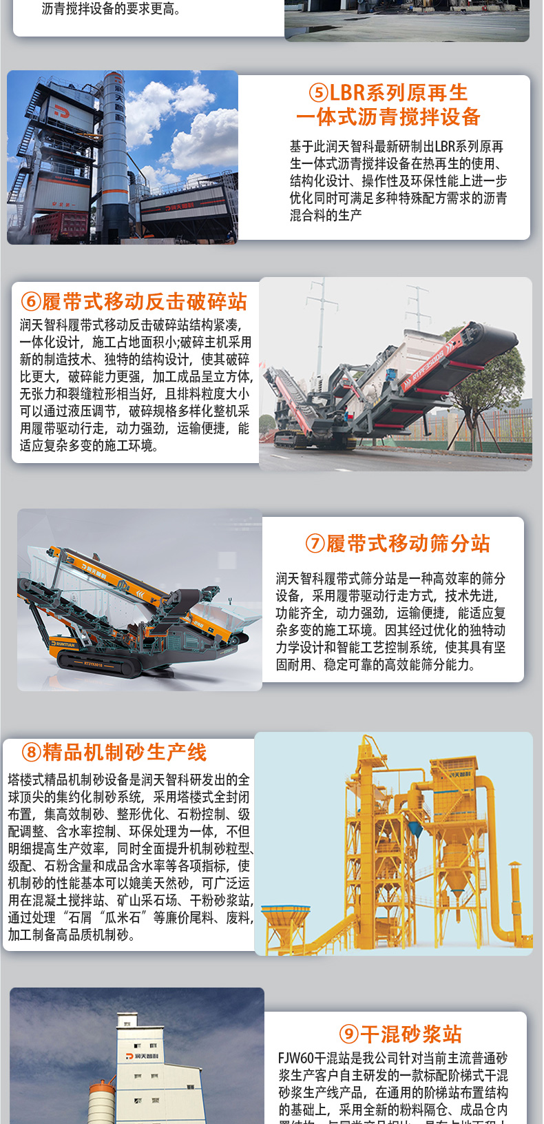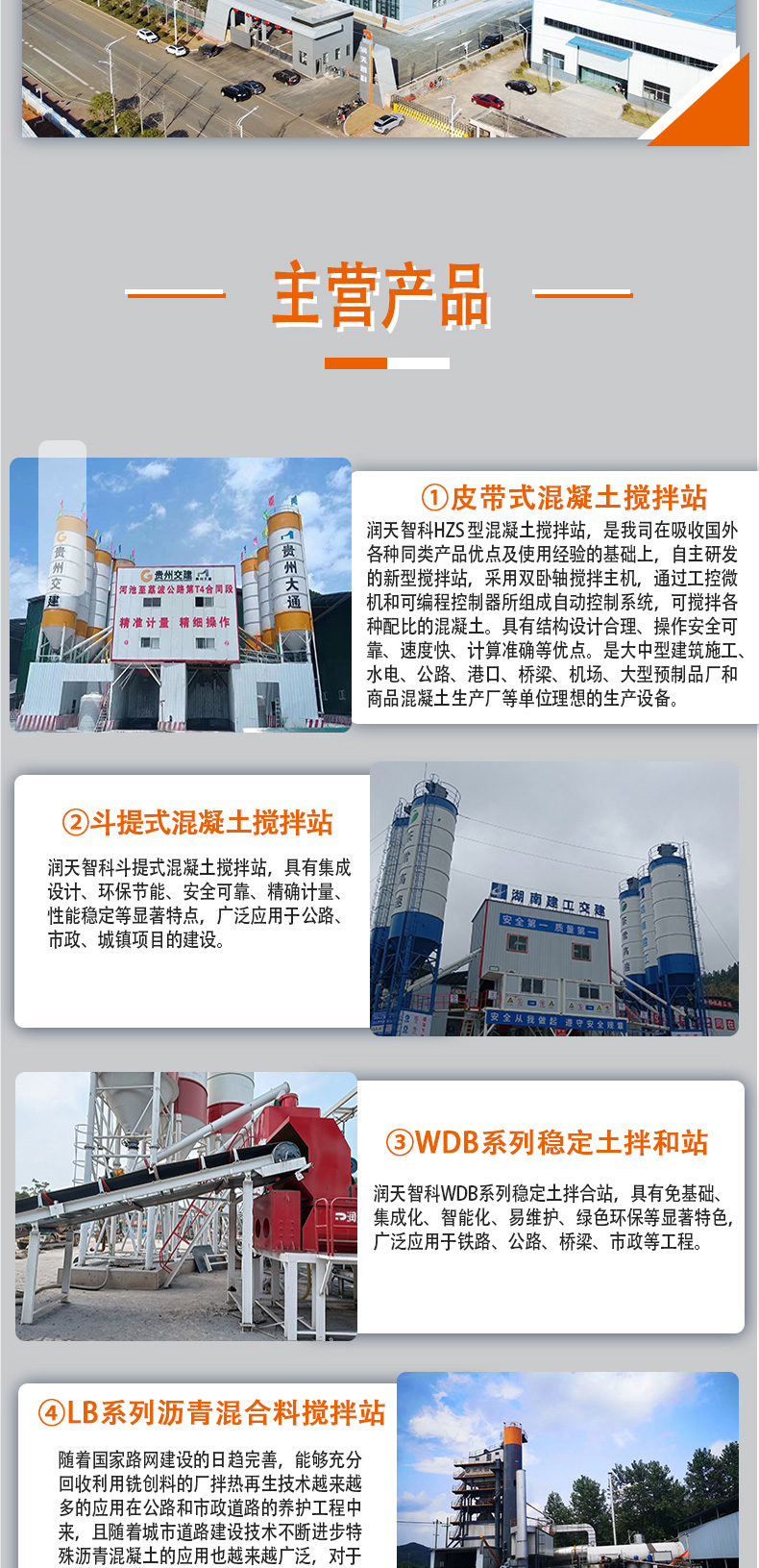 皮带式混凝土搅拌站、模块化筛分站、紧凑型PC环保搅拌站、斗提式混凝土搅拌站、沥青混合料搅拌设备