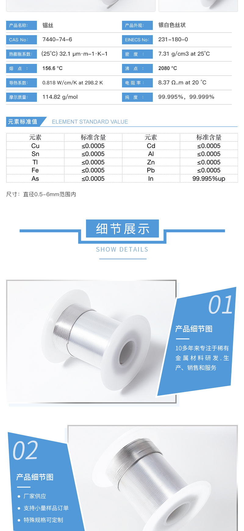高纯99.995%【铟丝】ITO靶材 低熔点合金 电池用