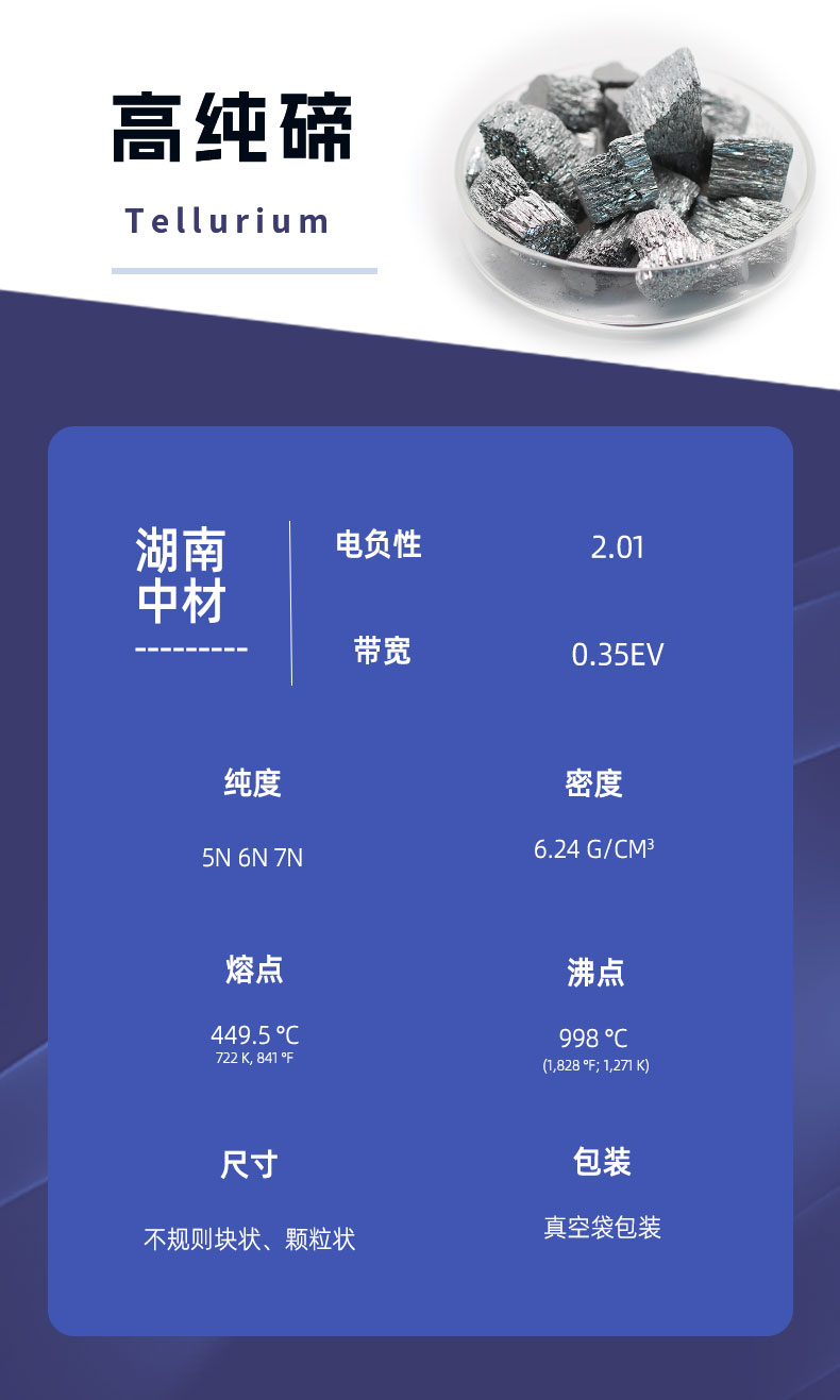 【高纯碲锭】碲块 5N 6N 7N 碲化铋 高纯合金 电子制冷元件用