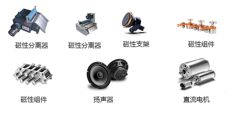 材料牌号 | 剩余磁感应强度 | 磁感应矫顽力 | 内禀矫顽力 | **磁能积 | 材料 | 主要应用 | |