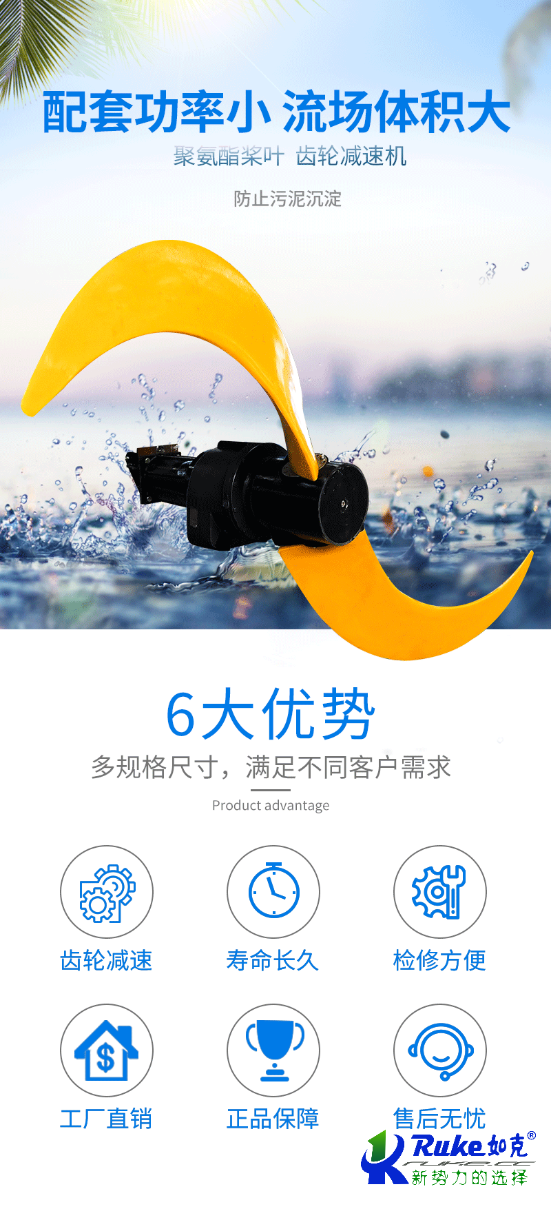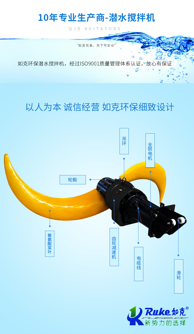 如克 水下搅拌机 不锈钢材质玻璃钢叶轮 噪音低连续作业