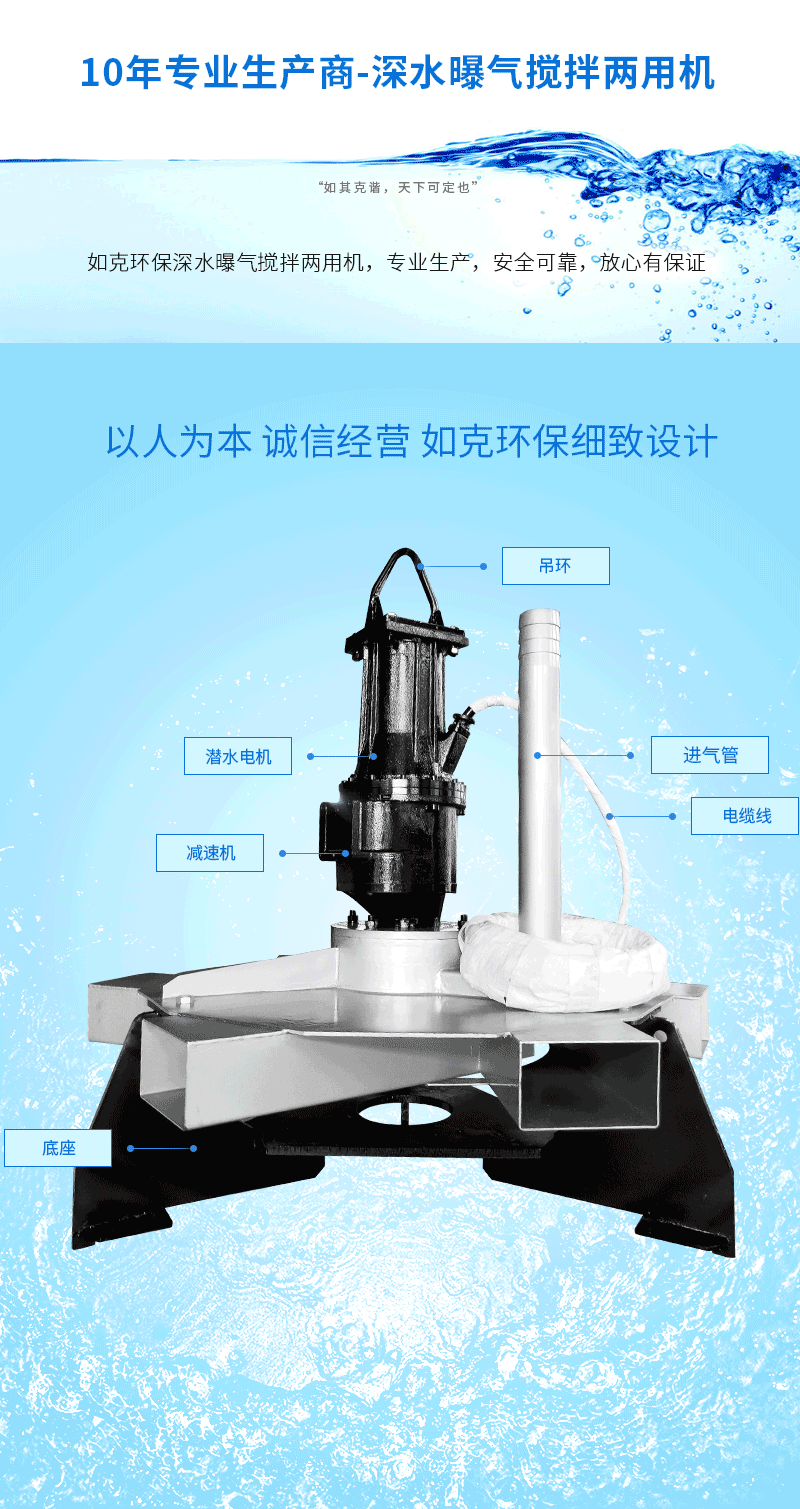 如克SBJ10/20-D型深水曝气搅拌两用一体机 氧化塘专用混合设备