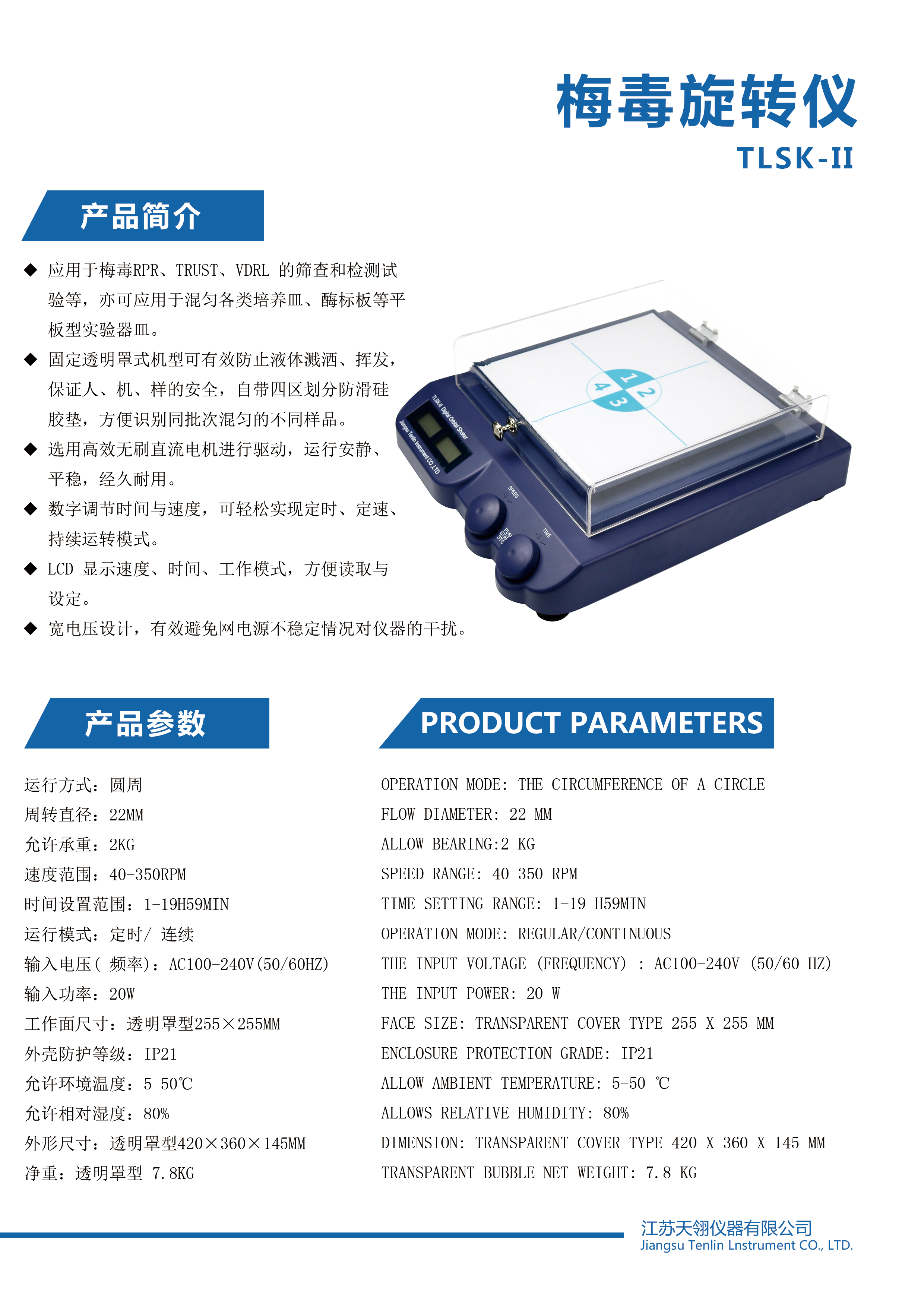 天翎仪器 TLSK-II 智能数显梅毒旋转仪水平摇床