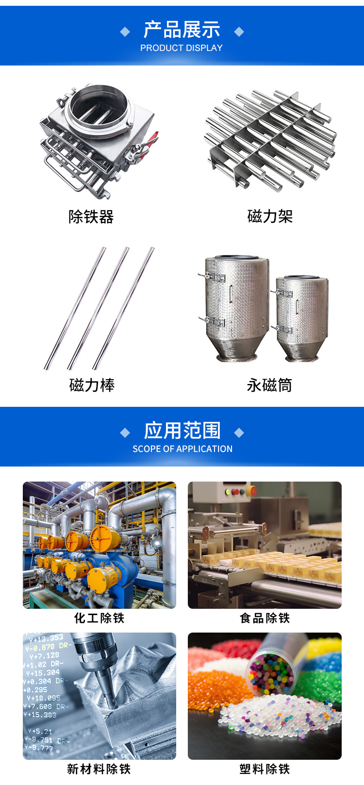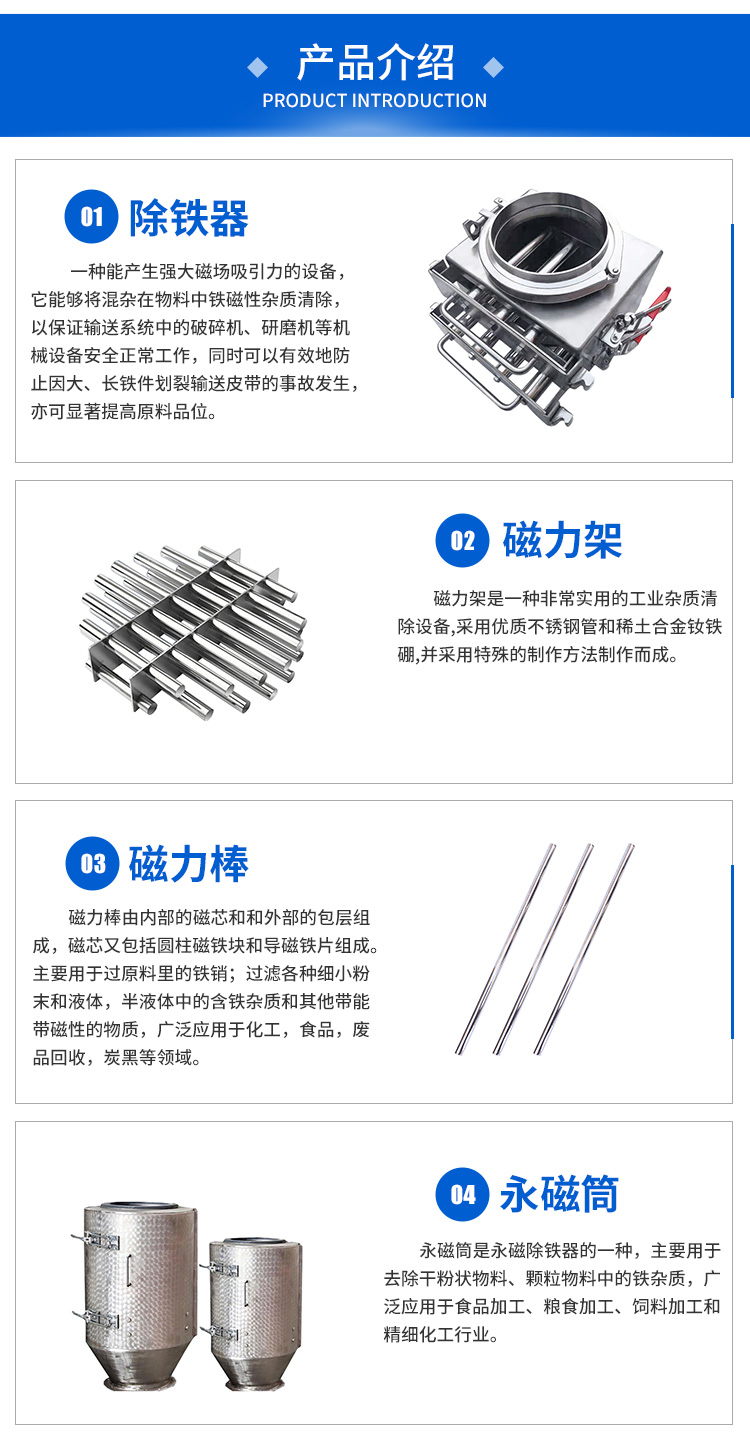 永磁筒、除铁器、磁力架、强力磁棒、磁柱磁力棒、管道除铁设备