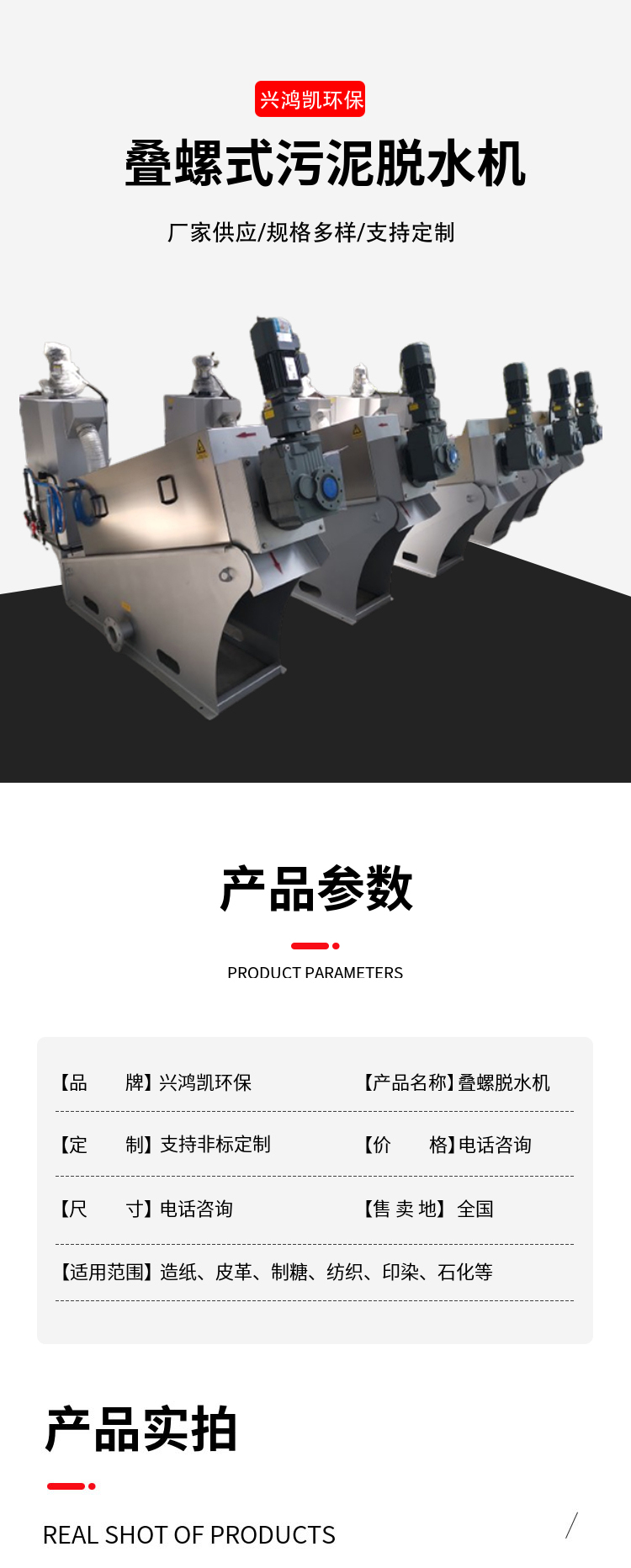 市政污泥脱水机 小型全自动叠螺 造纸厂处理设备 兴鸿凯环保
