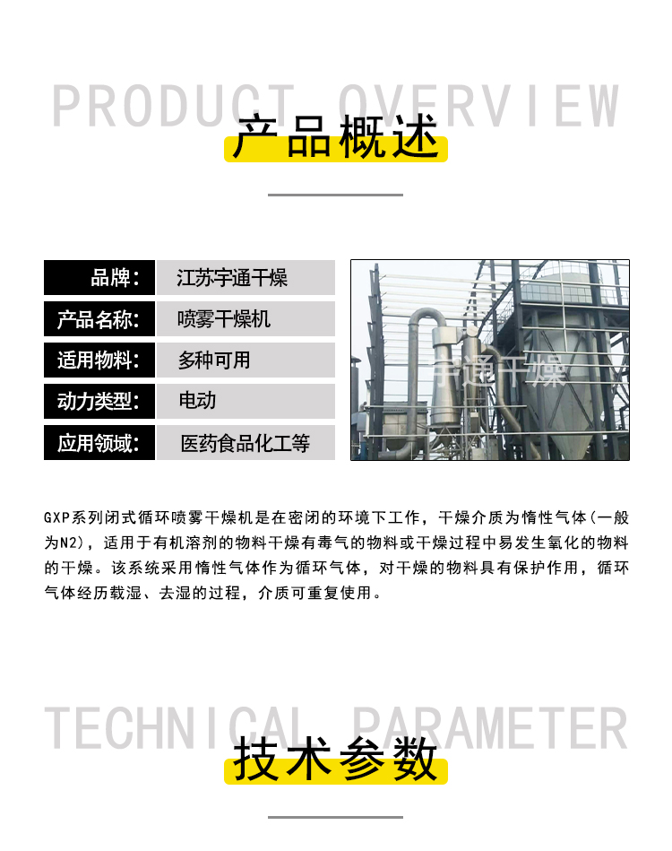 GXP系列闭路循环喷雾干燥机 采用惰性气体 平均粒径10-100目