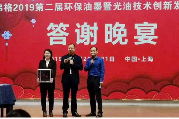 弗格2019第二届环保油墨暨光油技术创新发展论坛于11月20-21日在上海召开,江苏卓新研磨科技有限公司销售总监廖旭先生受邀参加,并作为颁奖嘉宾出席答谢晚宴。