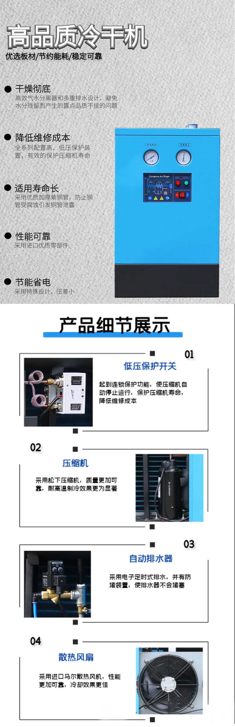 奥夫科冷干机 常温型风冷式 压缩空气除水空压机冷冻式干燥机