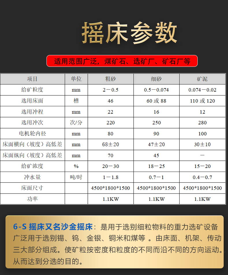 直供6S选矿摇床水洗尾矿铜米钨矿锰矿锡矿重选分离设备上下瓦配件