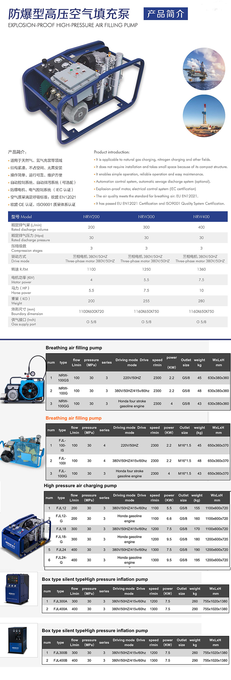 厂家直供 无油30mpa 正压消防呼吸气泵 工业带证书