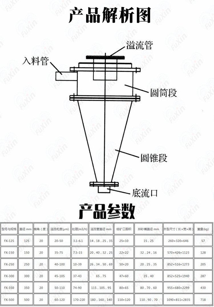 尾矿浓缩设备 水力旋流器 聚氨酯旋流器组 矿用脱水分离器