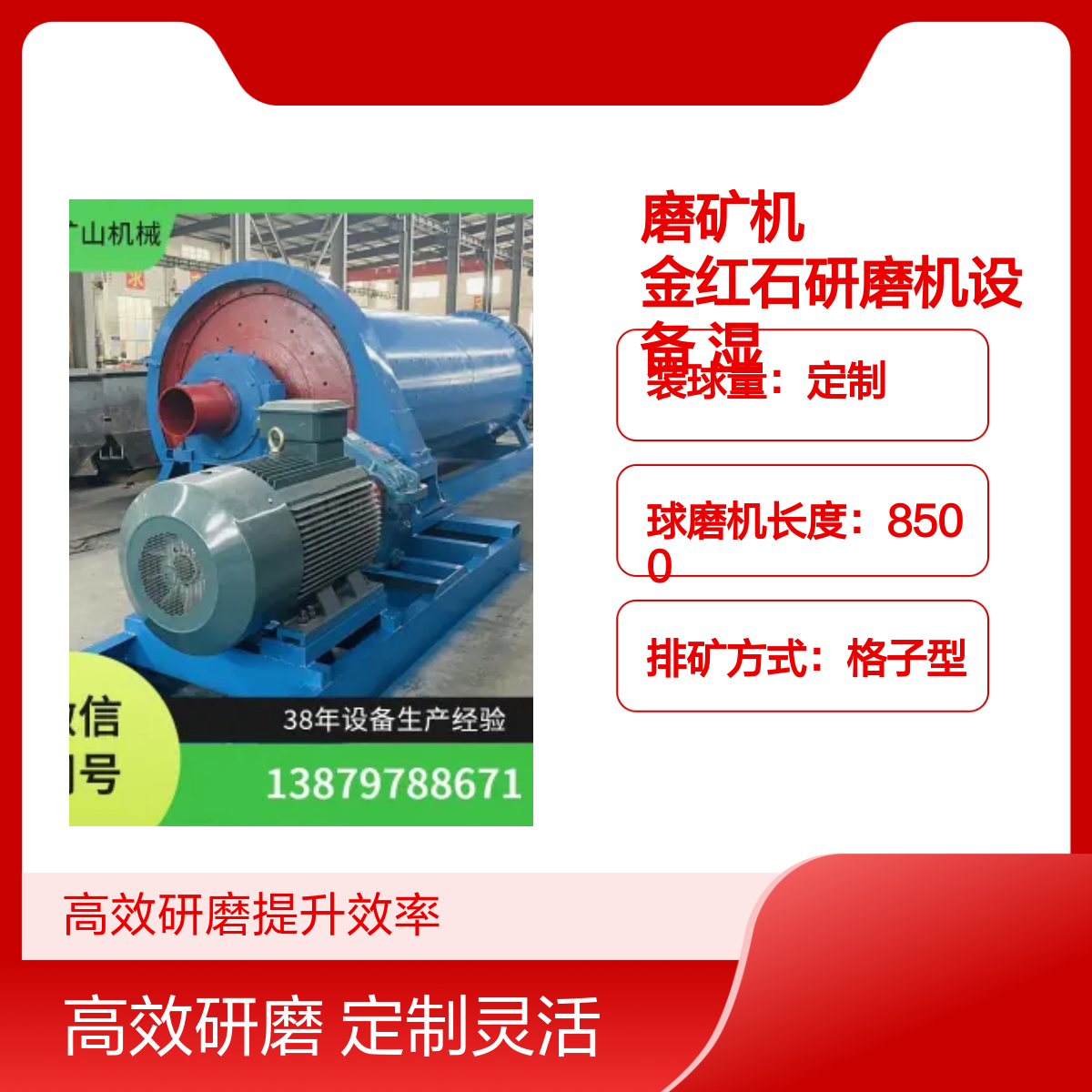 磨矿机 金红石研磨机设备 湿式格子型球磨机 打破物料结块现象