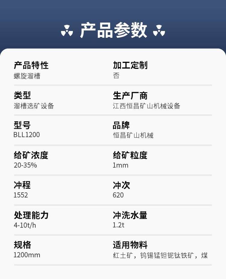 锆英石矿,选矿螺旋溜槽,使用寿命长,耐磨,0.8-0.037mm