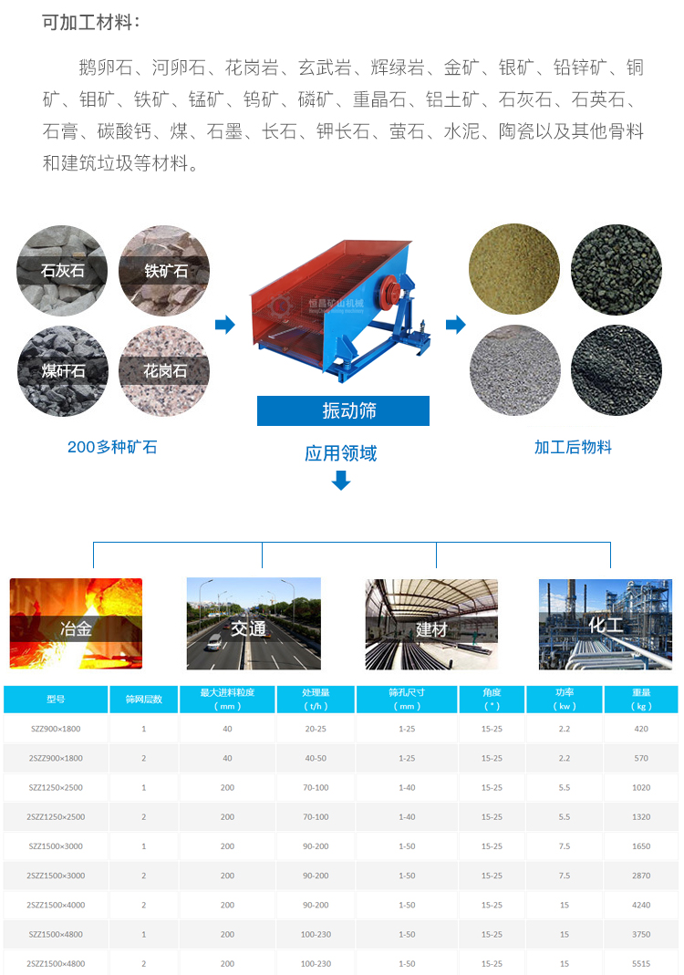 球磨机、螺旋分级机、跳汰机、选矿摇床、振动筛、搅拌桶、浮选机、破碎机