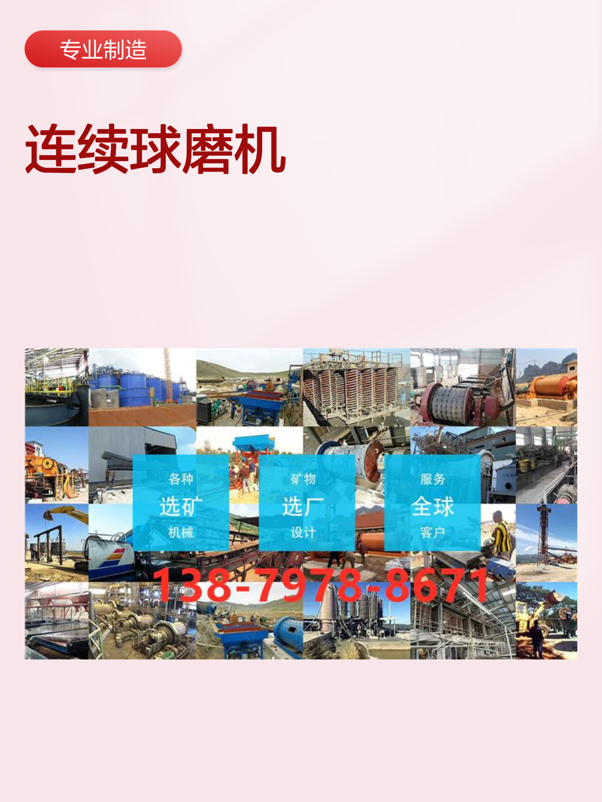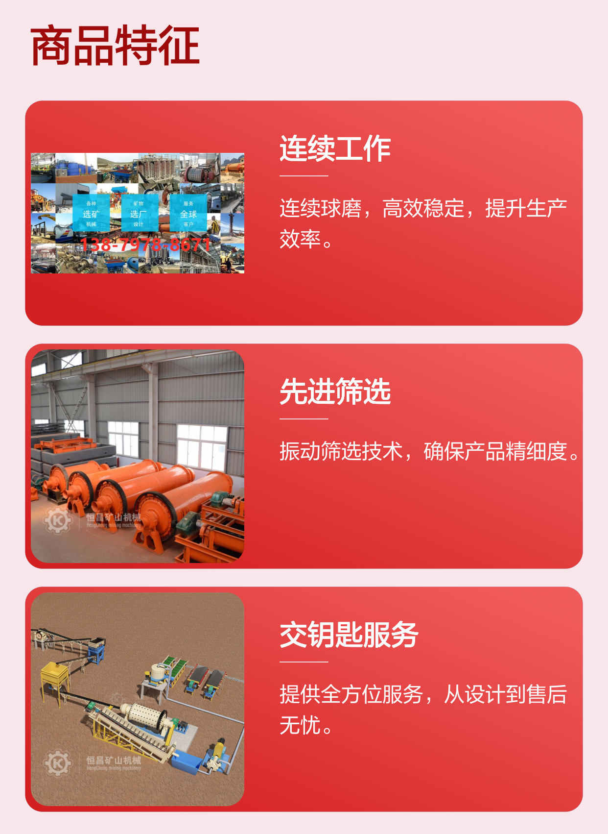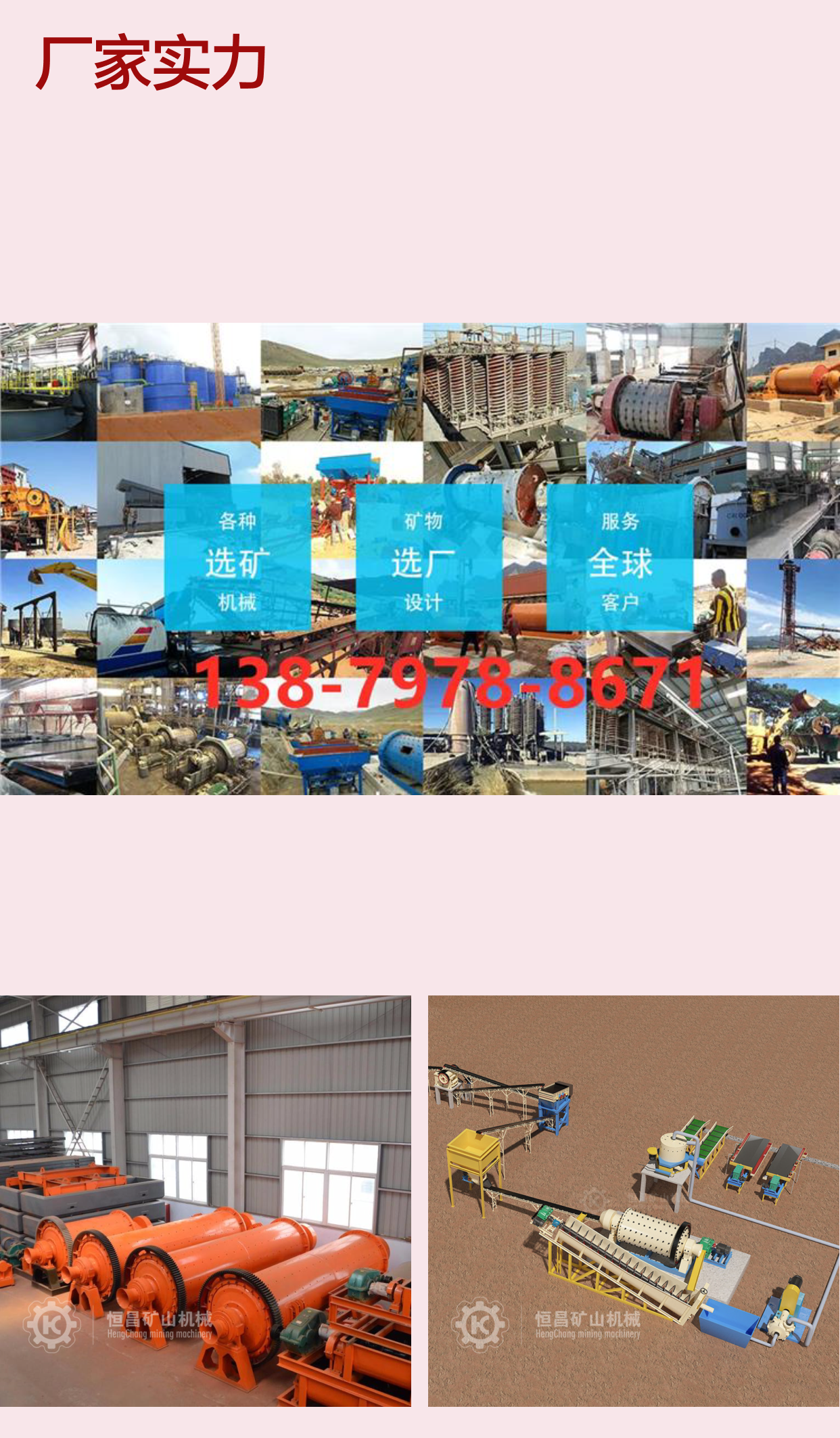 球磨机、螺旋分级机、跳汰机、选矿摇床、振动筛、搅拌桶、浮选机、破碎机