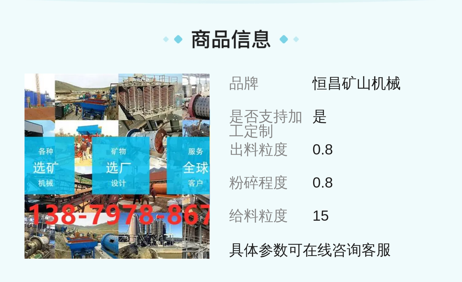 球磨机、螺旋分级机、跳汰机、选矿摇床、振动筛、搅拌桶、浮选机、破碎机