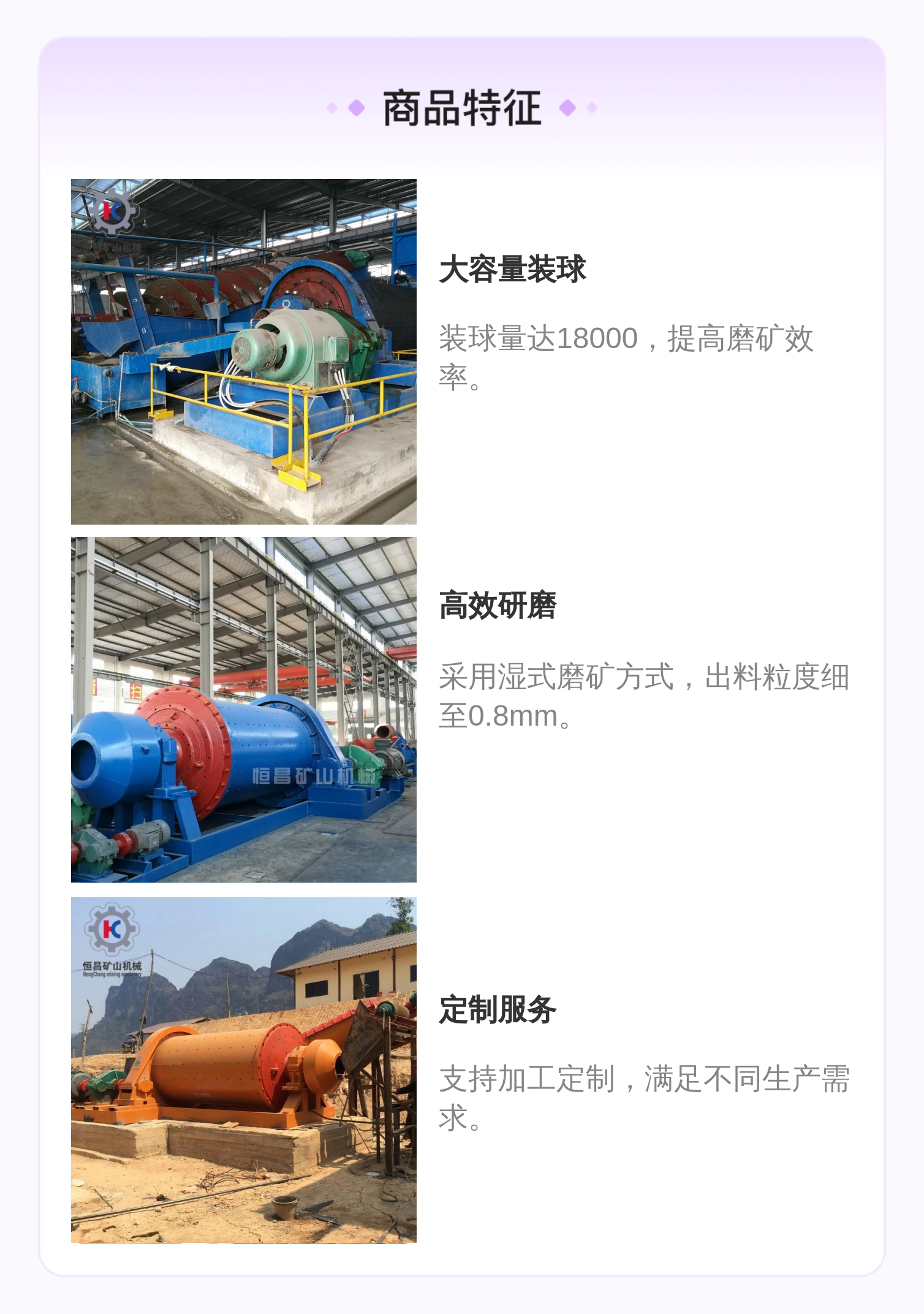 恒昌矿山机械 大型球磨机 陶瓷衬板 磨矿粉设备生产厂家 搅拌研磨