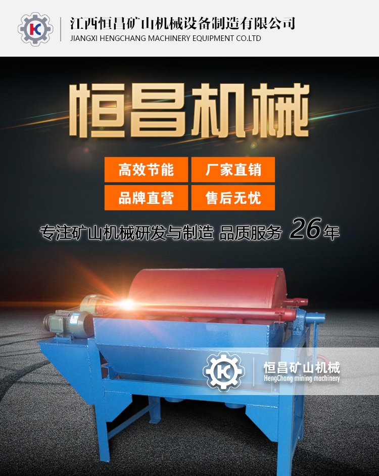 恒宏矿机Ф1500×5700磁选机 鼓形湿法弱磁 可调磁场