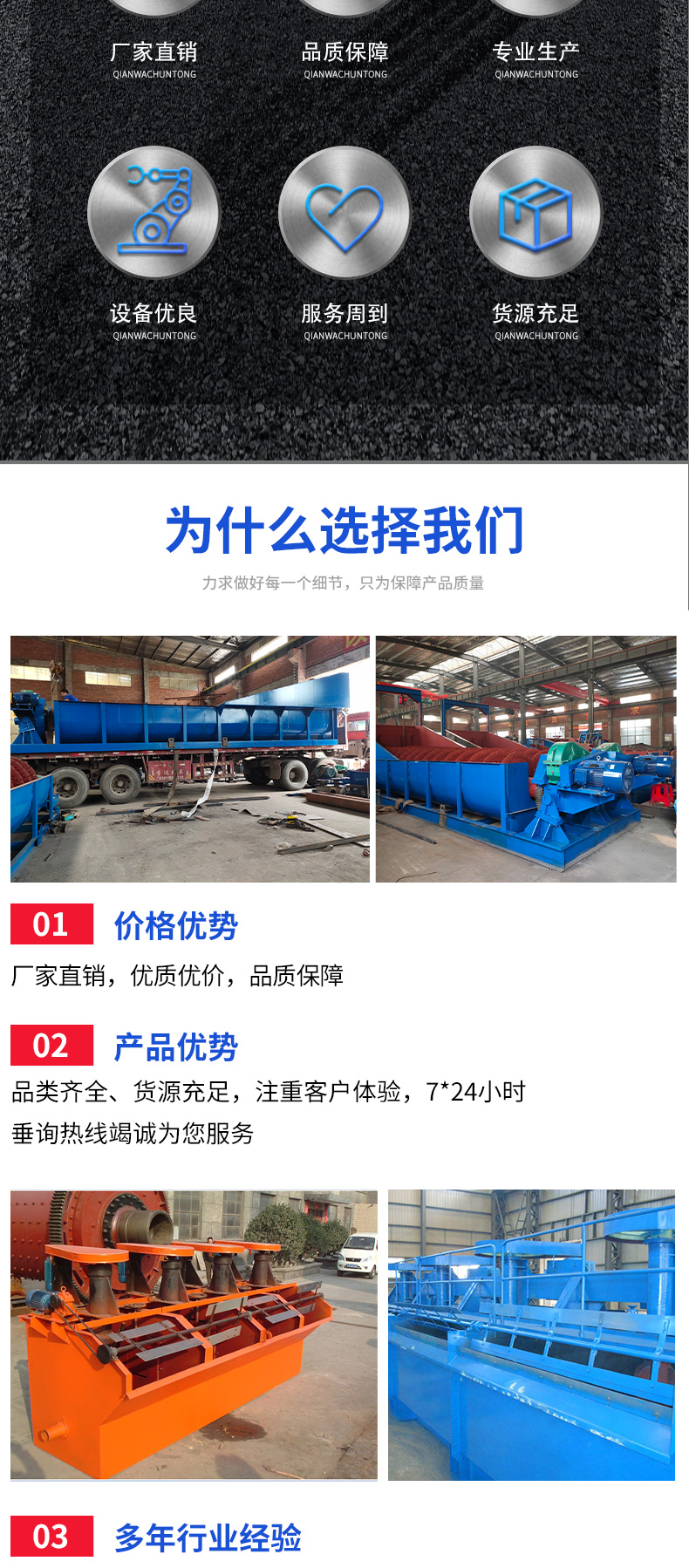 选矿摇床、螺旋溜槽、跳汰机、螺旋分级机、滚筒筛、圆筒洗矿机、浮选机、球磨机、振动筛、水力旋流器、浓密机、洗砂设备、矿用搅拌桶、给矿机、鄂式破机、磁选机、选矿设备、矿山设备、对辊破机、锤式破机、立式破机、浮选设备、重选设备、稀土选矿设备、离心选矿设备