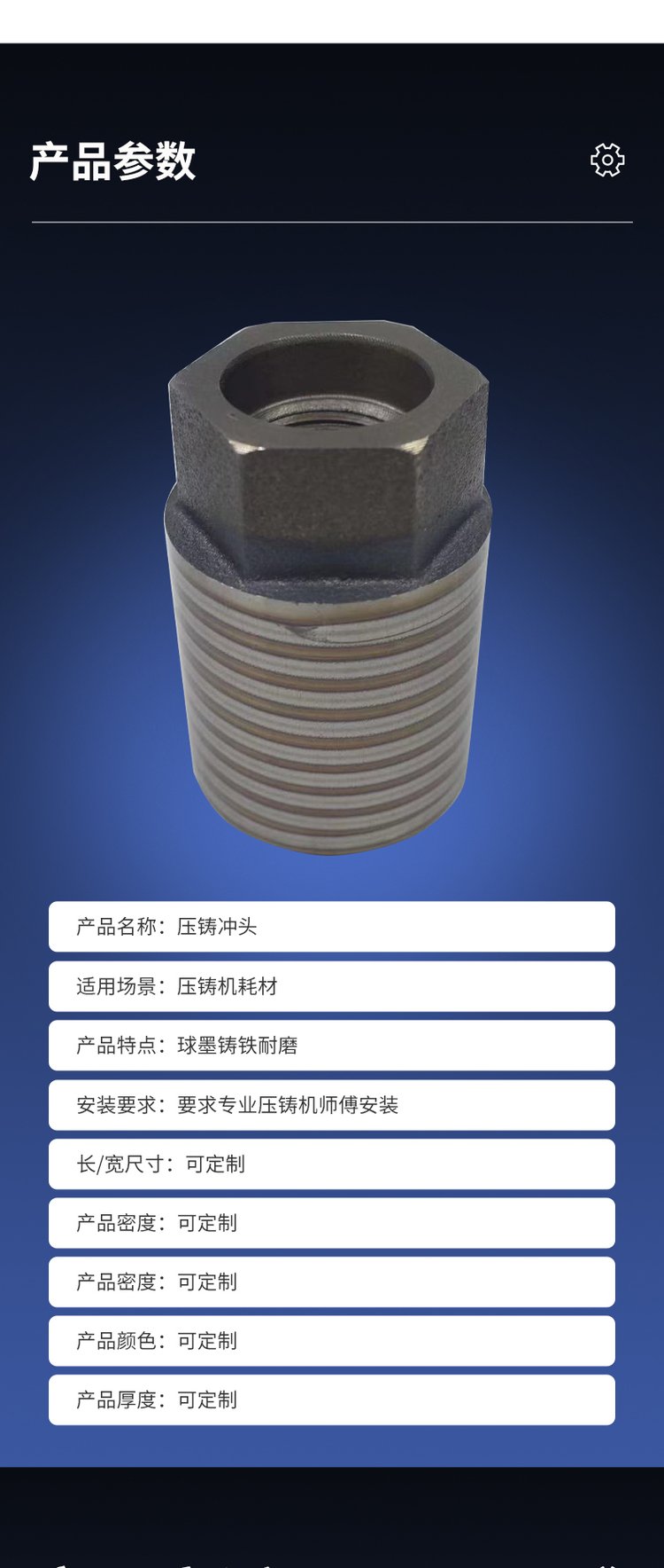 压铸机冲头、压铸机锤头、压铸机柱塞头、球磨冲头、球磨铸铁