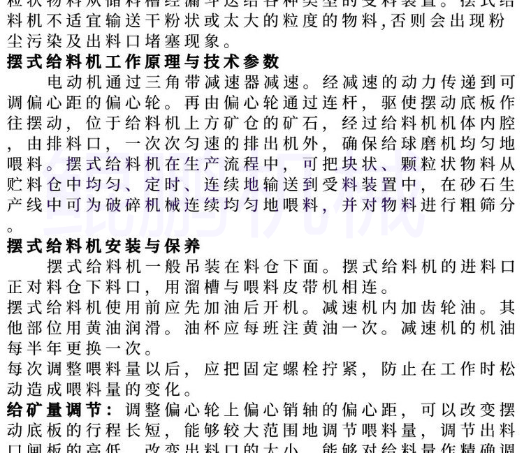 小块物料从矿仓的批量给料,尤其适合作为球磨机给矿及输送机的给料。