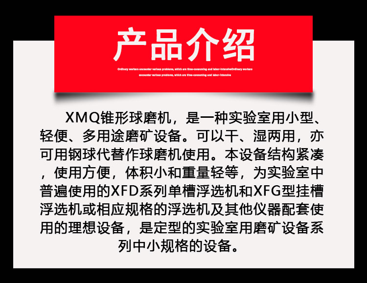 XMQ锥形球磨机 实验室用磨矿设备 矿石磨粉机寿命长 钢球配比均匀