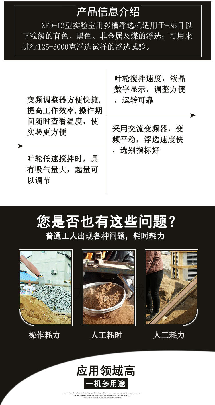 实验室多槽浮选机 XFD-12用于35目矿料试验浮选设备 不锈钢叶轮转子