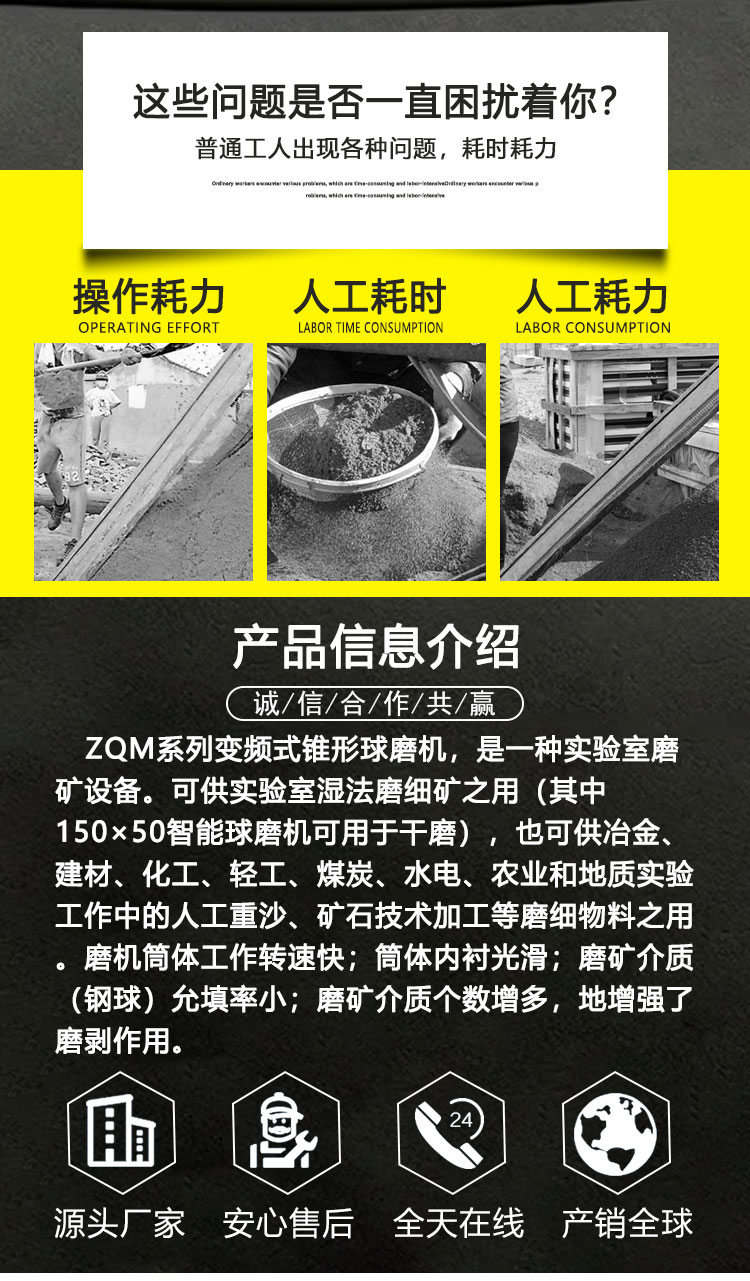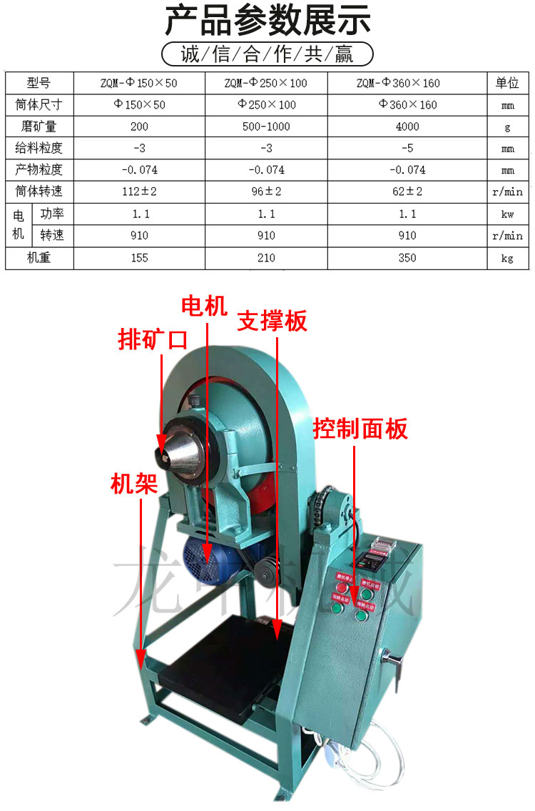 实验室矿石细磨机 智能款变频调速自动卸料 ZQM360*160锥形球磨机