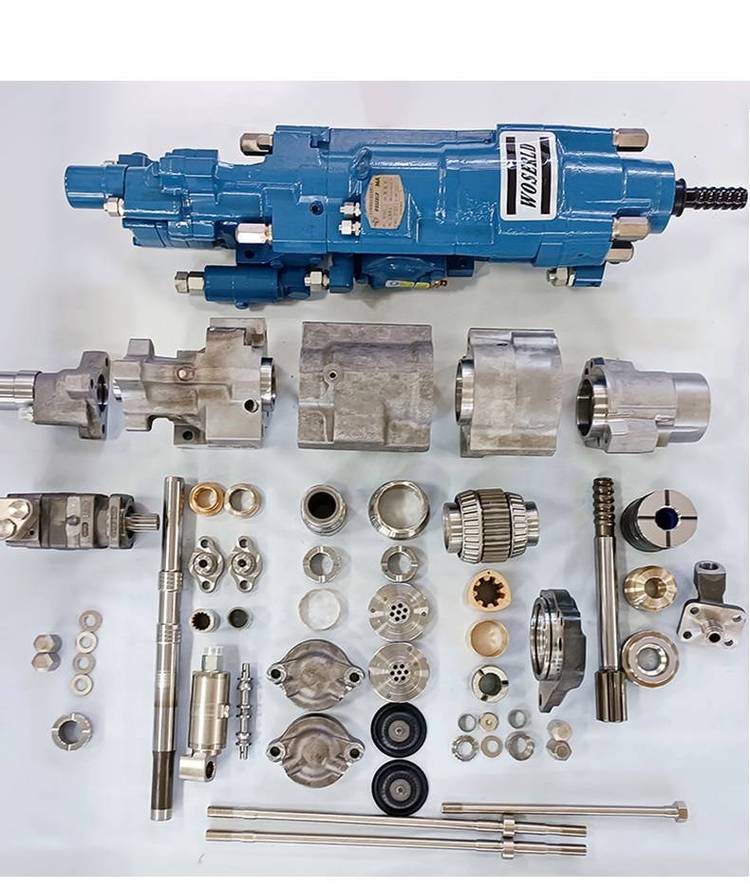连接板、凿岩机、传动轴、轴承套、缓冲套、梅花扳手、缓冲衬套、液压马达、缓冲活塞、套筒转接头、高低压蓄能器、液压锚杆钻车、掘进凿岩台车、冲击活塞止动环、蓄能器拆装工具、岩机配件活塞盖